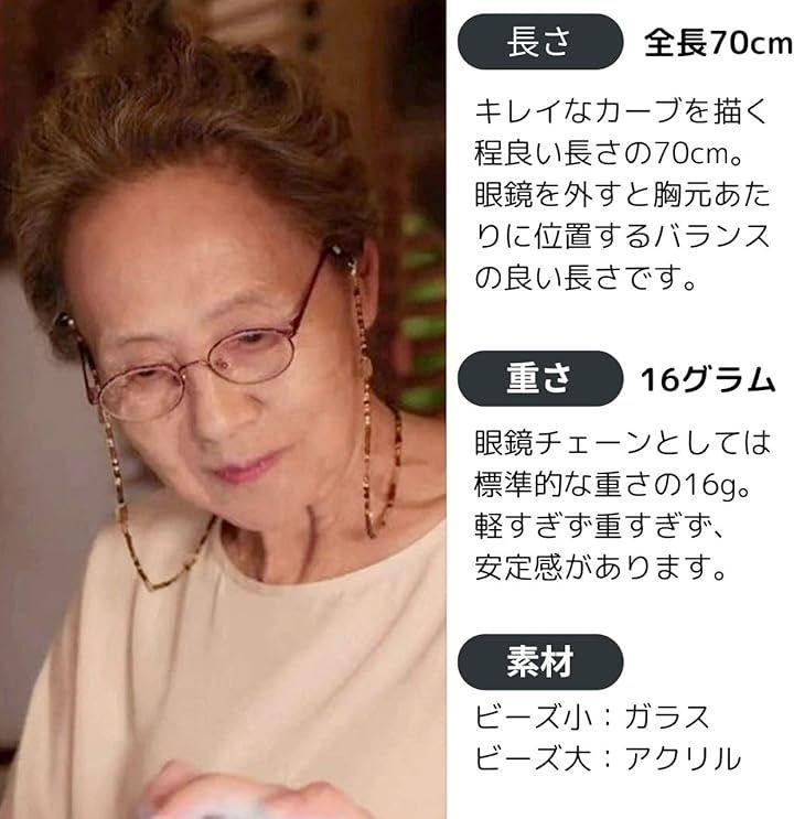老眼鏡や眼鏡、サングラスに装着でき、ネックレス感覚でおしゃれを楽しむことができます。