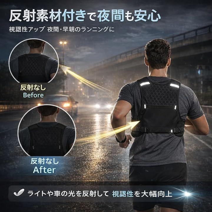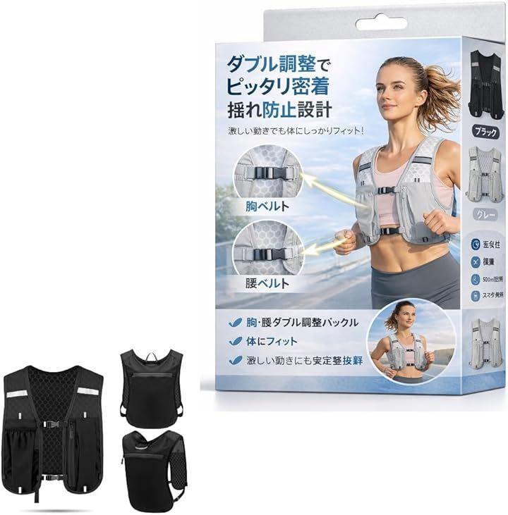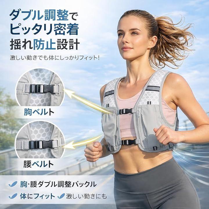 ベスト型構造と調整機能の組み合わせにより、快適性と安定性を両立したランニングベストとして設計されています。