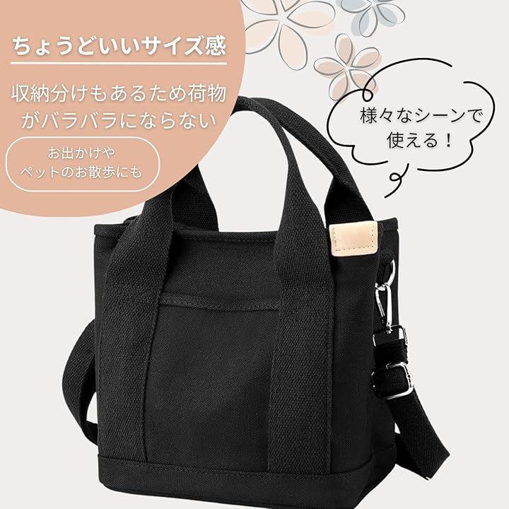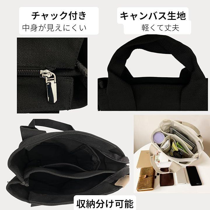 「2色x2スタイルの汎用性」本ページはブラック/ホワイトの2色、手提げ/肩掛けの2スタイル。