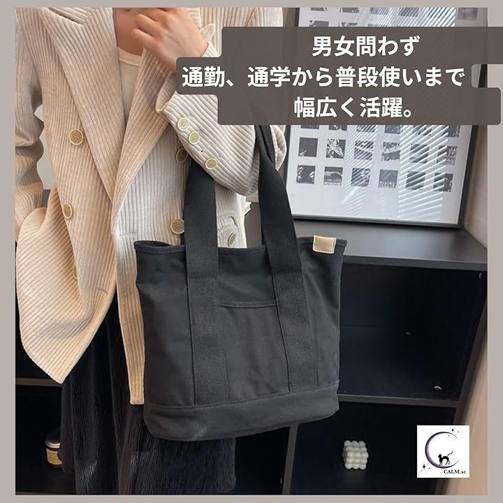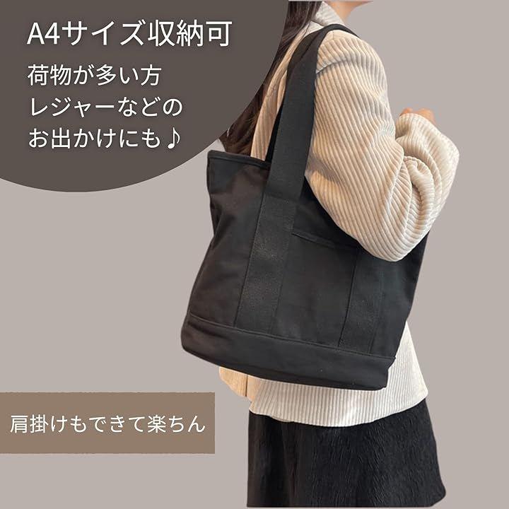 「2色x2スタイルの汎用性」本ページはブラック/ホワイトの2色、手提げ/肩掛けの2スタイル。