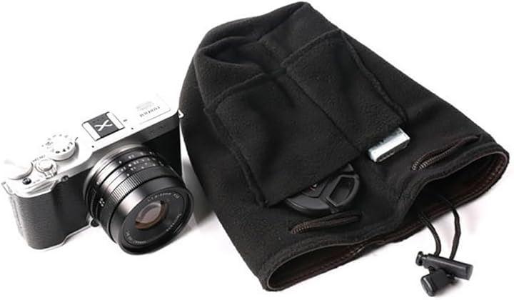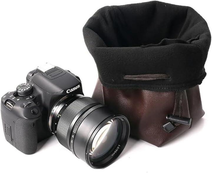 収納設計: 巾着式の開閉で、カメラやレンズに優しく、素早くアクセス可能な設計