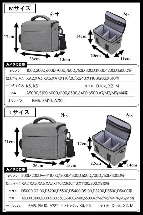 「サイズ」Mサイズ:(外寸)横幅23x奥行13x高さ17cm (内寸)横幅20x奥行11x高さ14cm Lサイズ:(外寸)横幅26x奥行15x高さ21cm (内寸)横幅22x奥行14x高さ17cm「重さ」Mサイズ:300g Lサイズ:350g「カラー」ブラック、グレー「付属品」防水カバー