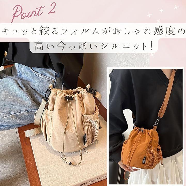 トレンドデザインのドローストリングショルダーバッグです。