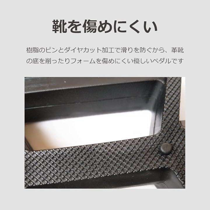 「靴を傷めにくい」樹脂のピンとダイヤカット加工で滑りを防ぐから、革靴の底を削ったりフォームを傷めにくい優しいペダルです。