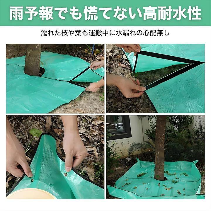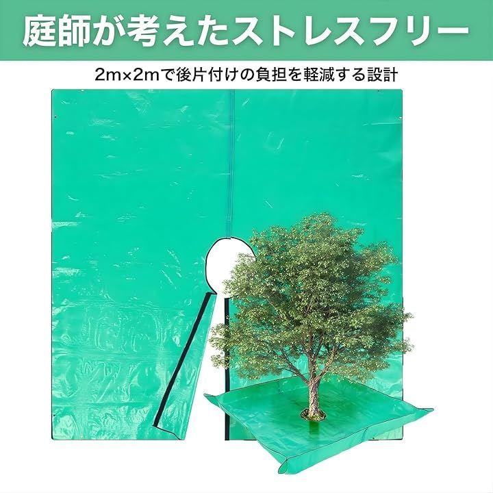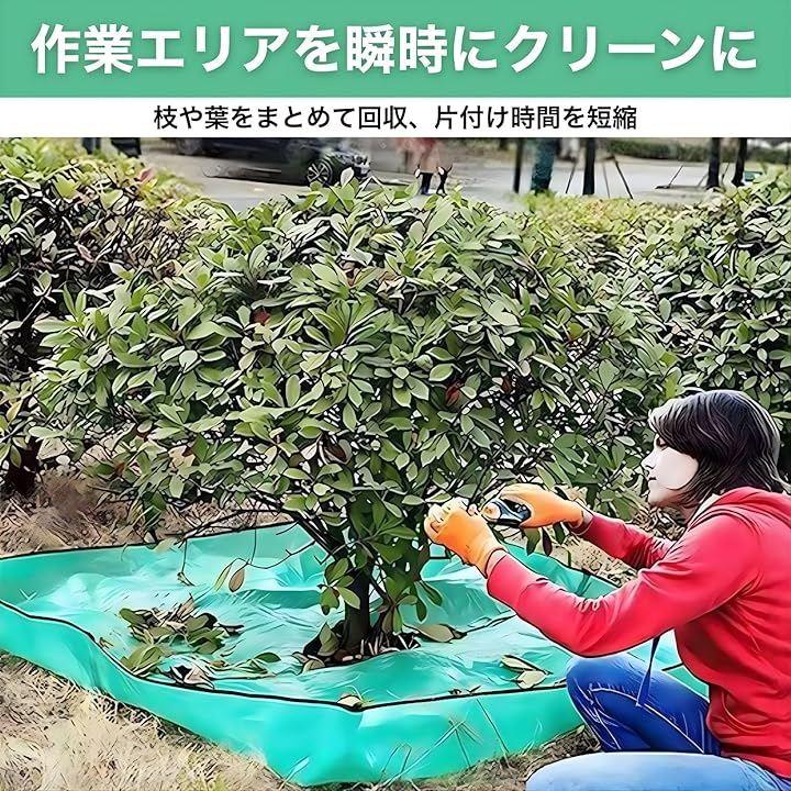 「剪定 シート 布 ガーデニング」は、2mx2mの大判サイズなので、一度に大量の落ち葉、剪定枝、雑草、芝刈り後の芝生を広範囲で受け止め、収集できます。
