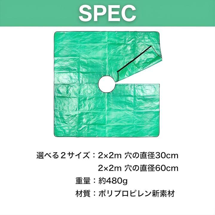 「商品仕様」サイズ1個:2x2m 穴の直径30cm、穴の直径60cm (重量:約480g) / 材質:ポリプロピレン新素材 *「2x2m 穴の直径30cm」、「2x2m 穴の直径60cm」のバリエーションをご用意しているので、お好きなものをお選びください。