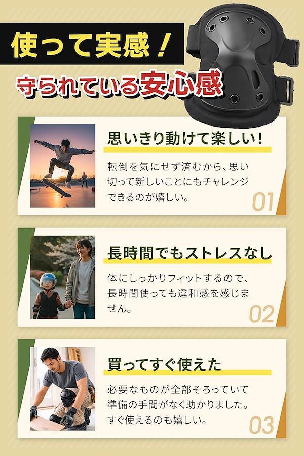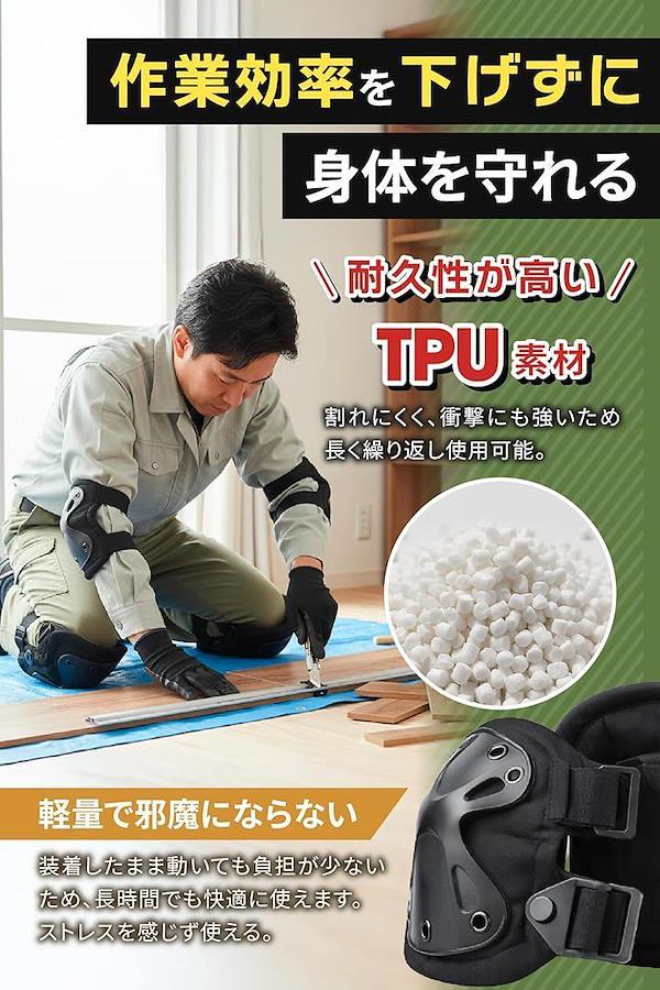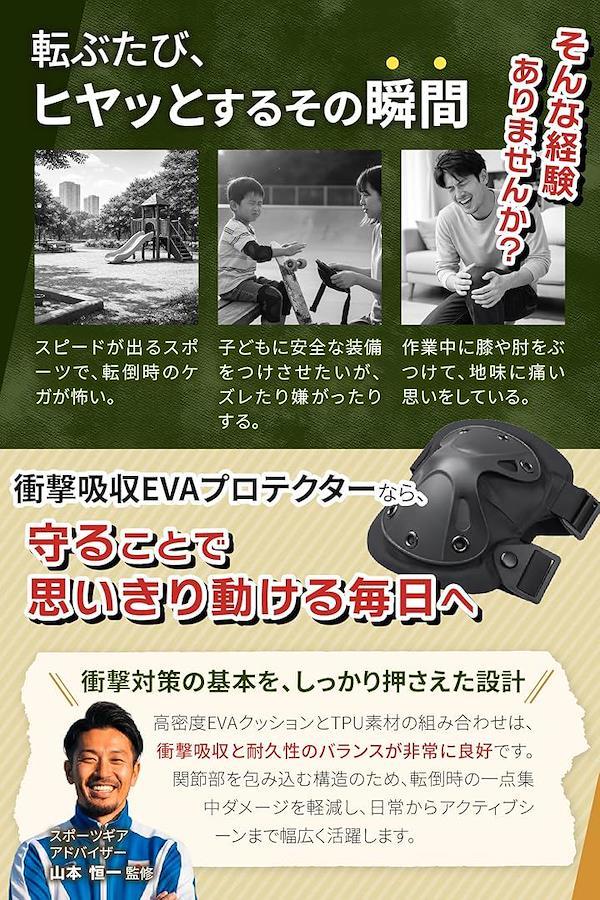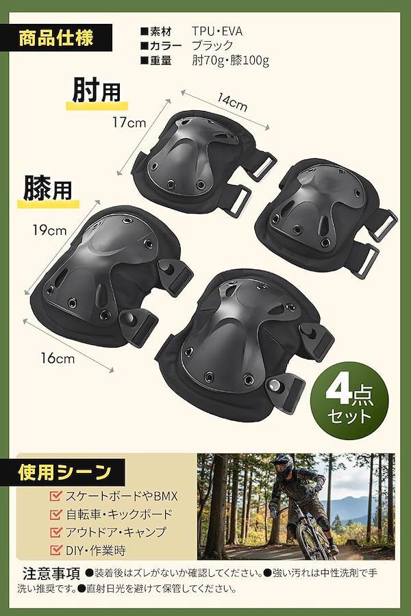 「商品仕様」 素材:TPU・EVA/サイズ:肘用14x17cm・膝用16x19cm/重量:肘70g・膝100g/セット数:肘左右+膝左右/カラー:ブラック