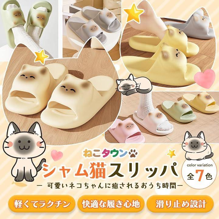 「シャム猫いっぱいの癒しデザイン」 シャム猫をモチーフにした、遊び心たっぷりのかわいいスリッパ。