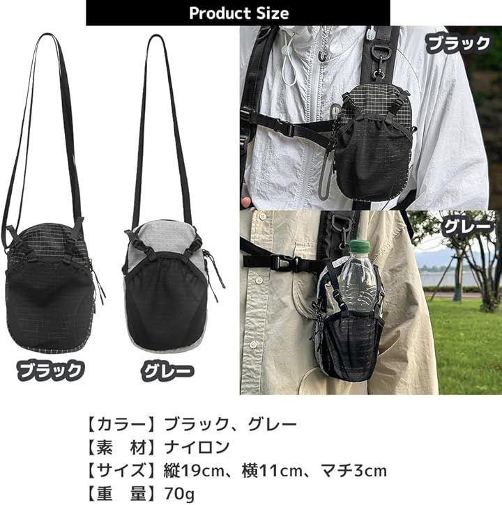 「カラー」ブラック、グレー「素材」ナイロン「サイズ」縦19cm、横11cm、マチ3cm「重量」70g