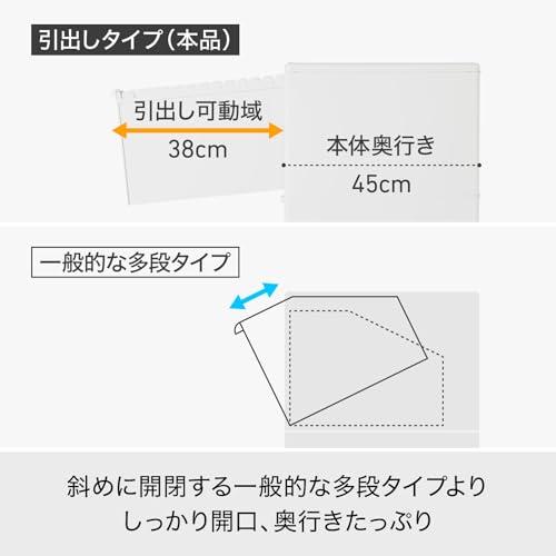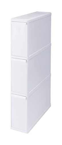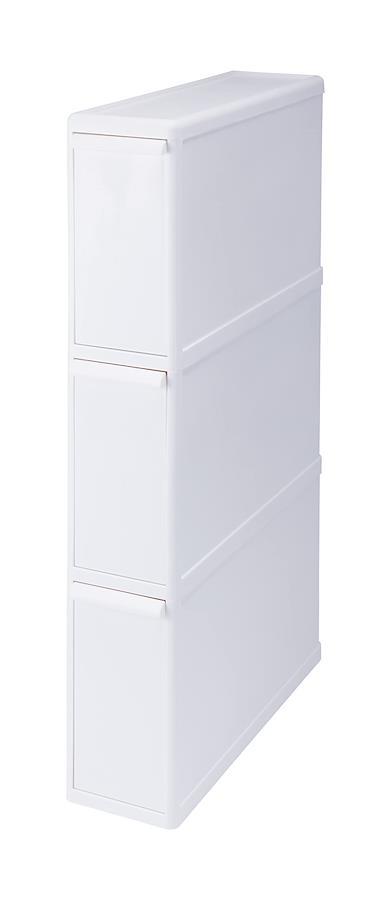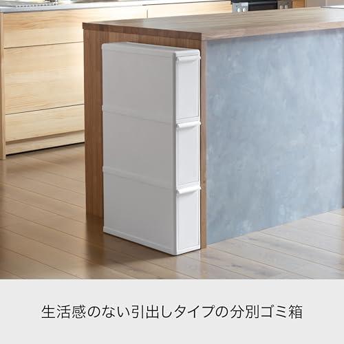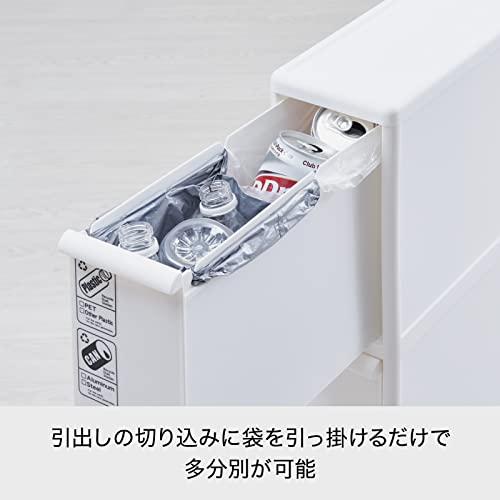 省スペースに使えるタテ型設計の分別引出し。 サイズ:約W14×D46.5×H79cm 容量:約27L 引出し内寸:W9.8xD42.9xH21.6cm 本体重量:約3.7kg 耐荷重:引出し/5.0kg、天板/2.5kg 素材:本体/ポリプロピレン 省スペースに使えるタテ型設計の分別引出し 引出し内部のフックに袋を引っ掛けて、分別可能