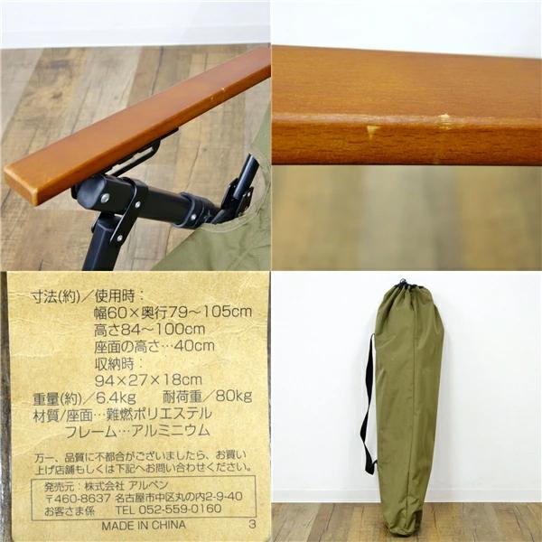 ■商品名アルペンアウトドアーズ Alpen Outdoors ハイバック チェア リクライニング 折りたたみ式 イス 椅子 キャンプ アウトドア - サイズ-■状態説明・Alpen Outdoorsの「ハイバック チェア」です♪・リクライニング機能は3段階の調整が可能◎・カラー オリーブ・使用時サイズ 幅60×奥行79~105×高さ84~100cm・重量 約6.4kg・耐荷重 80kg・多少の使用感はございますが、中古品の中ではキレイな状態です!【付属品:なし】■素材-■カラー-■表記サイズ-■実寸サイズ縦:約84~100cm横:約60cm奥行:約79~105cm■状態ランクAB 使用感があるが、傷や汚れの気にならない状態■店舗管理番号ce10ds-rk26y20412
