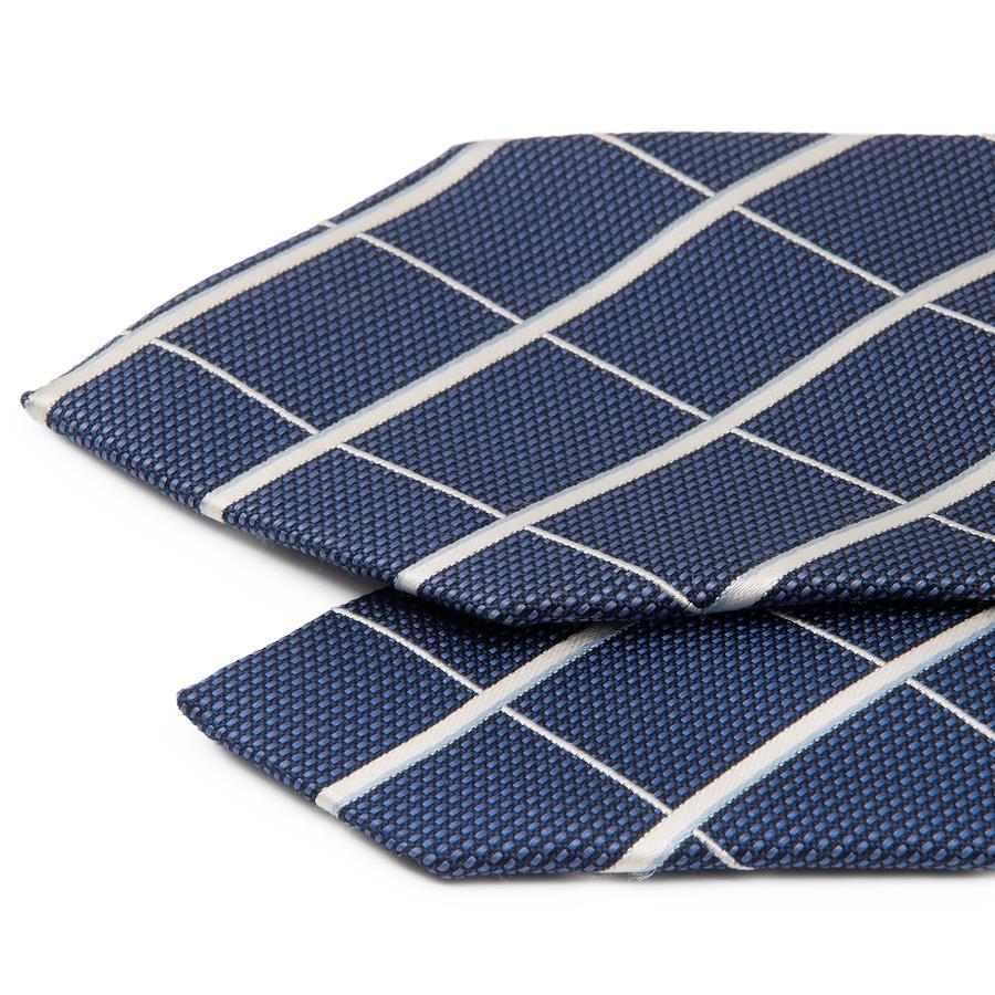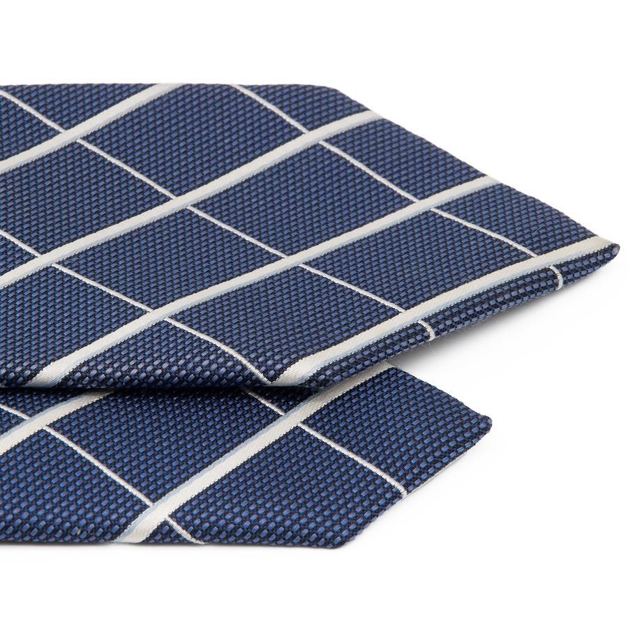 大人の男性にふさわしい落ち着いたブルーの色合いの中に、計算された格子柄のデザインが絶妙な余裕をもたらしております。
