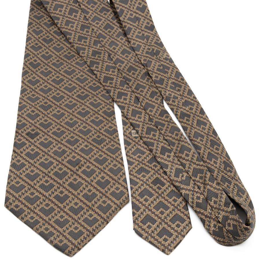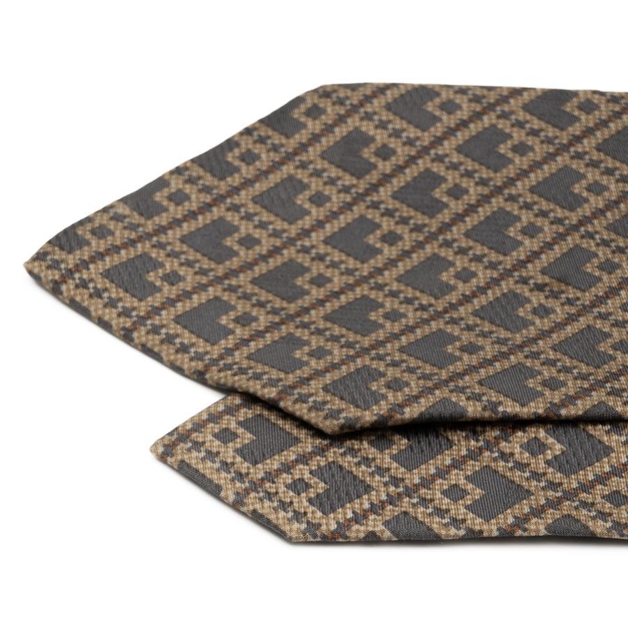 グレーとブラウンが織りなす繊細なスクエア柄は、知的でモダンな大人の雰囲気を醸し出しております。