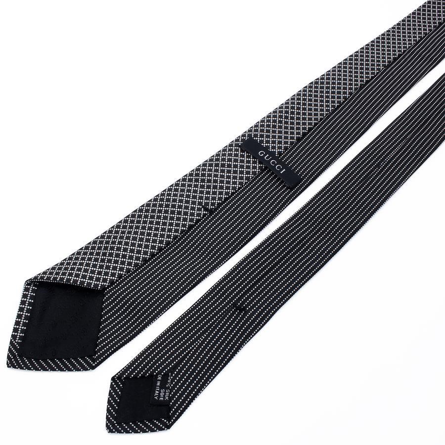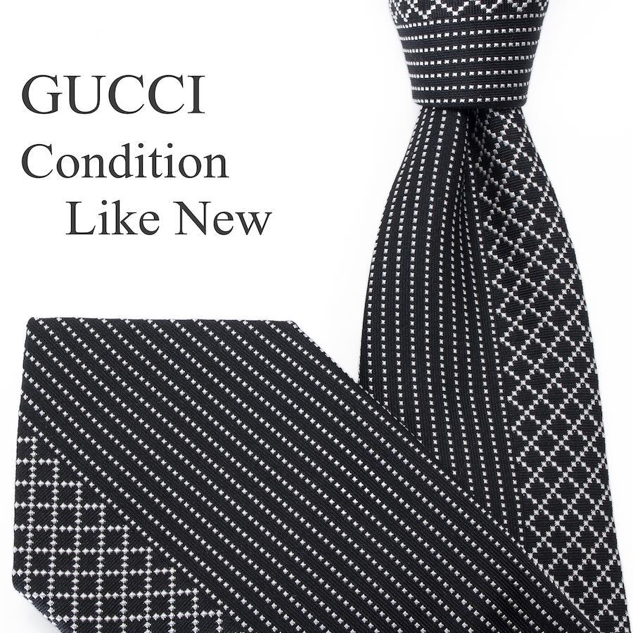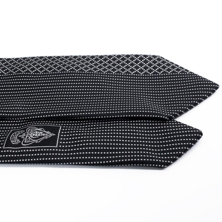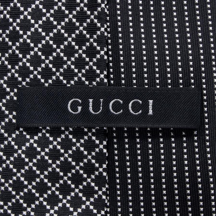 Like-new GUCCI tie, regular jacquard, clerical, silk, black, silver, suitable for men and women, business, casual, diamante, all-over print, asymmetrical, high-end, rare, stylish, made in Italy, S603