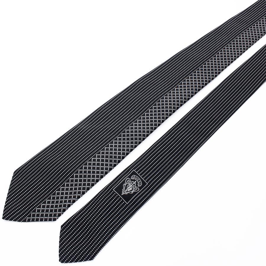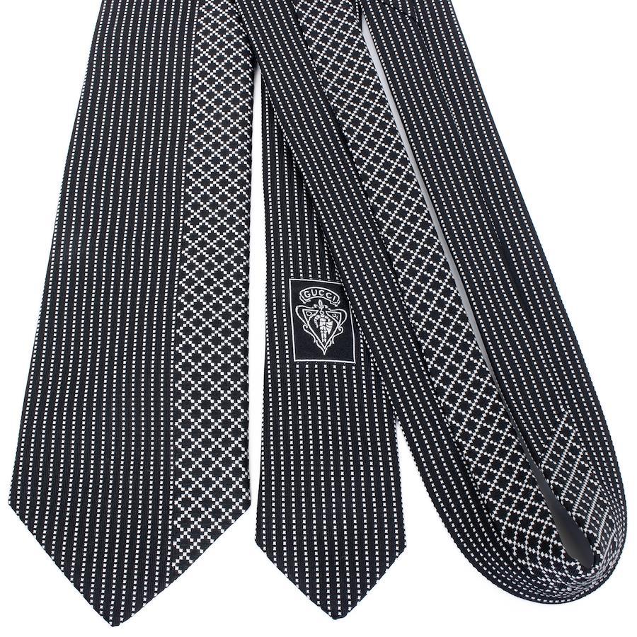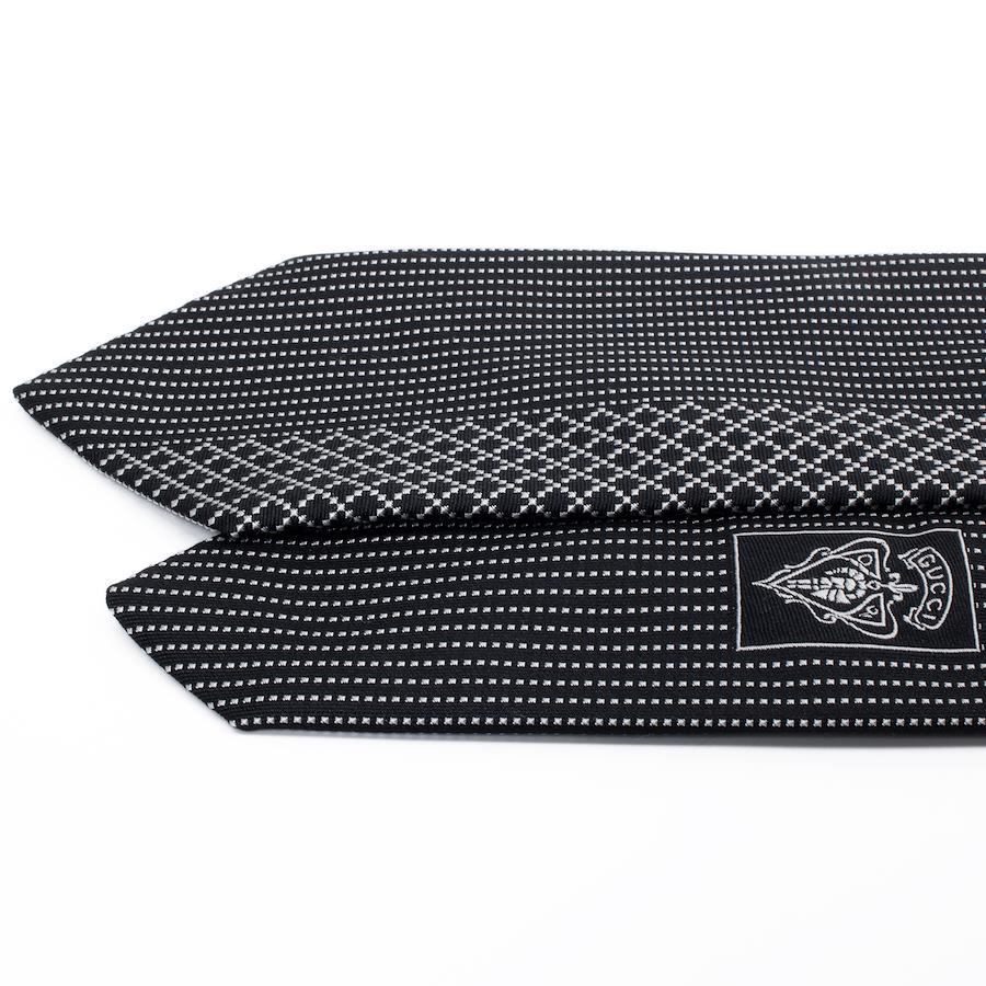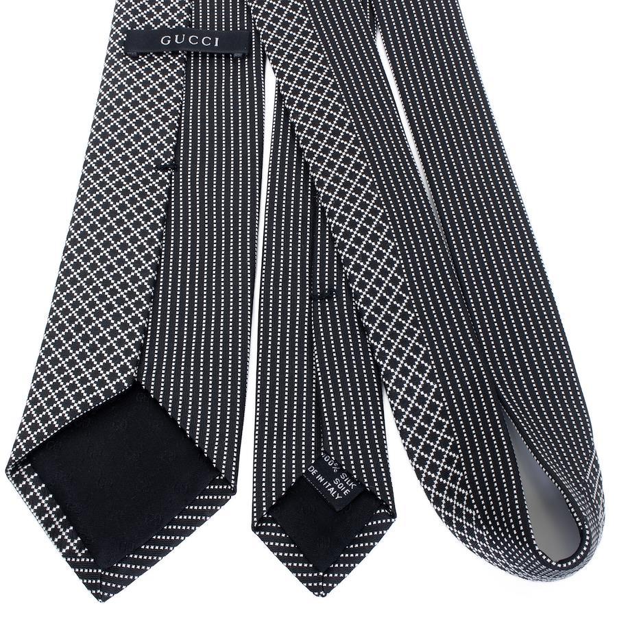 Like-new GUCCI tie, regular jacquard, clerical, silk, black, silver, suitable for men and women, business, casual, diamante, all-over print, asymmetrical, high-end, rare, stylish, made in Italy, S603