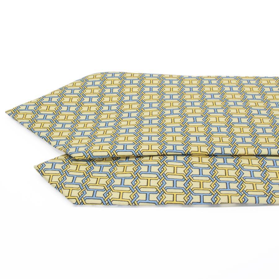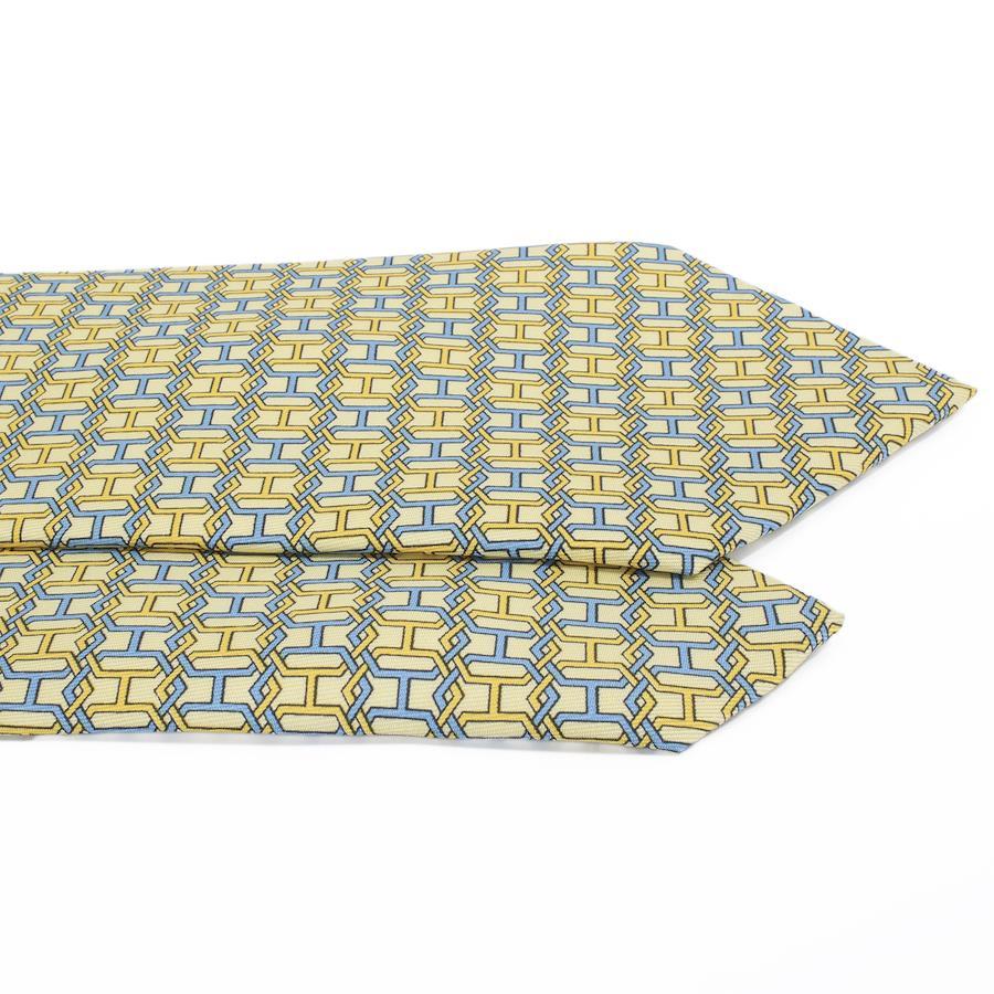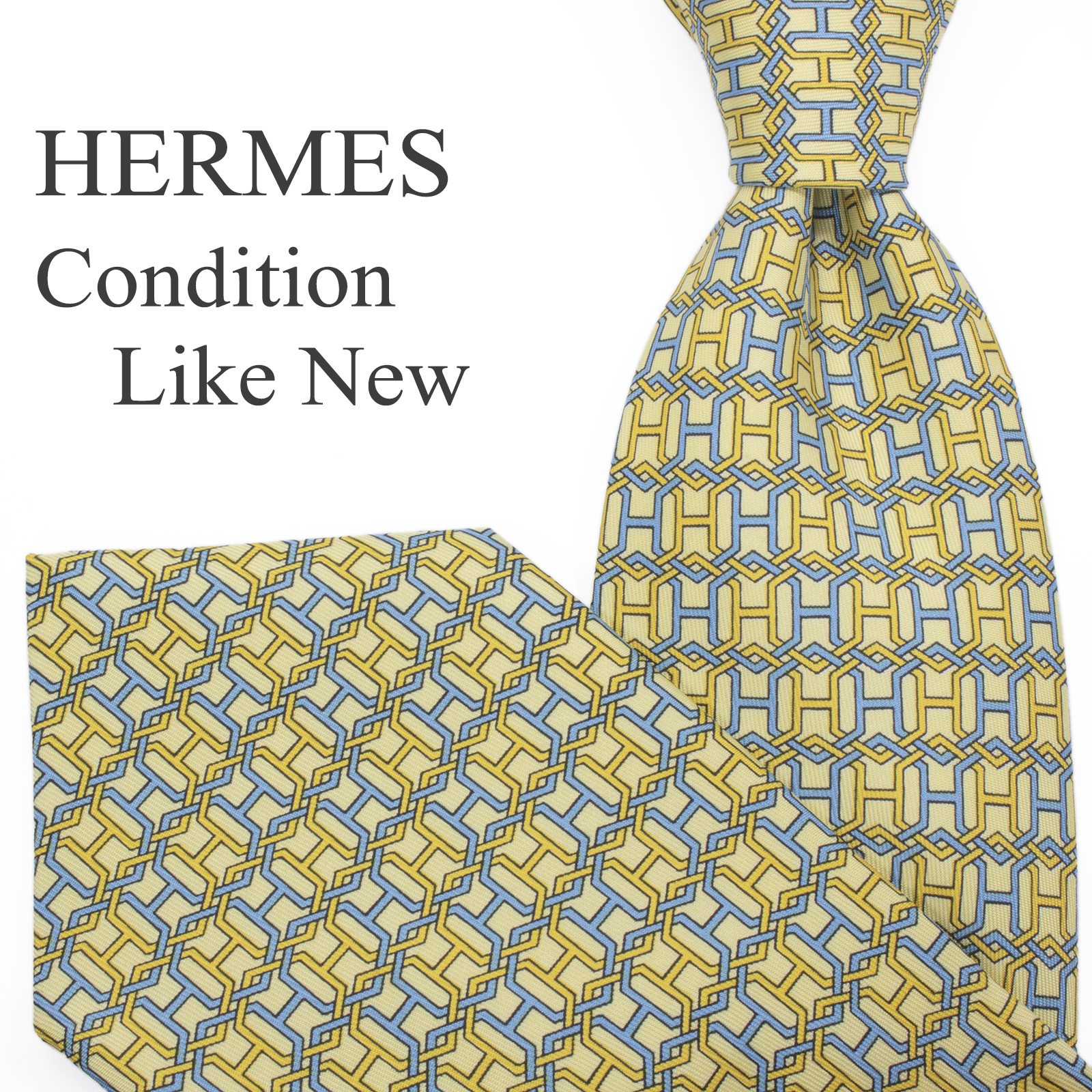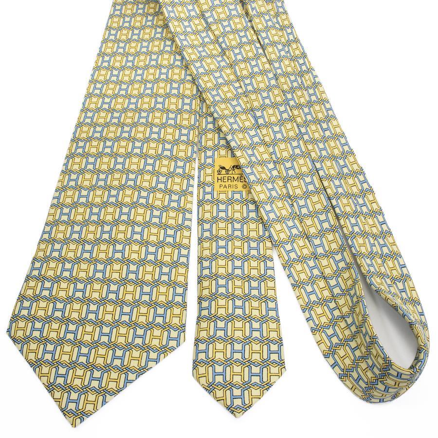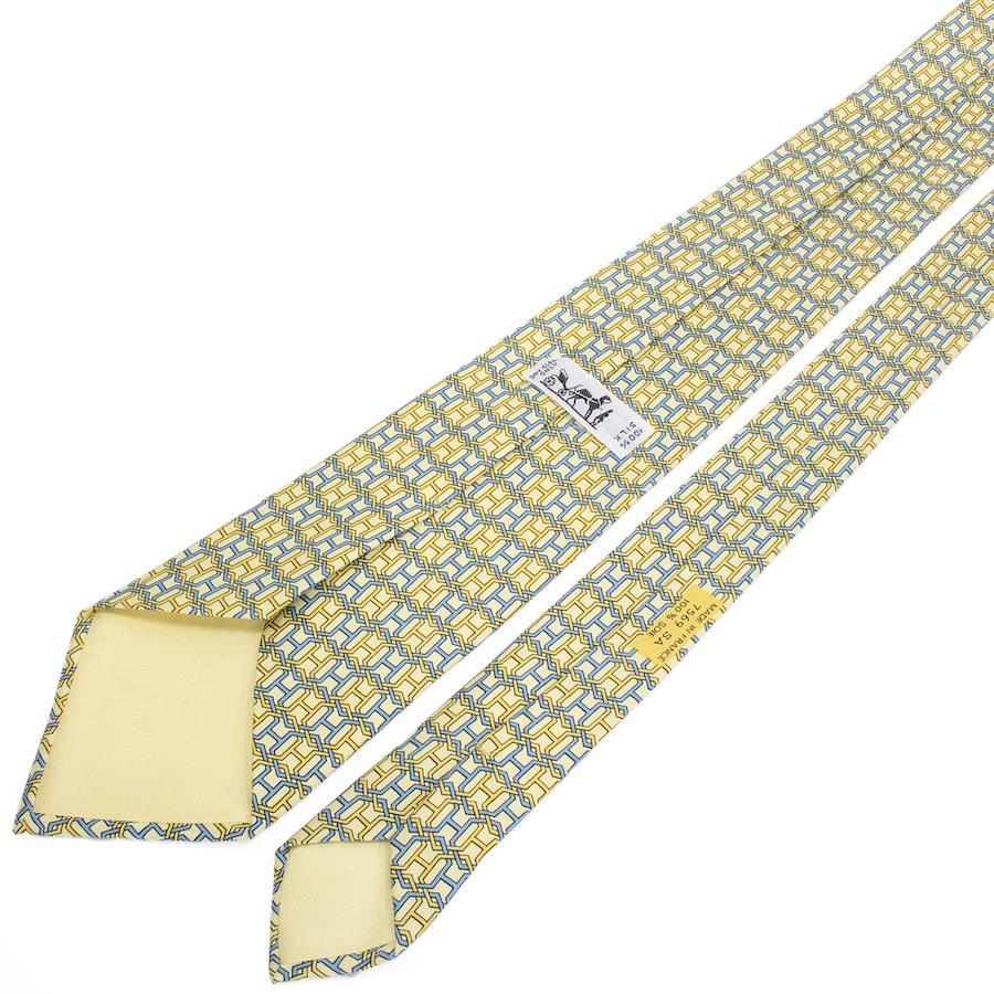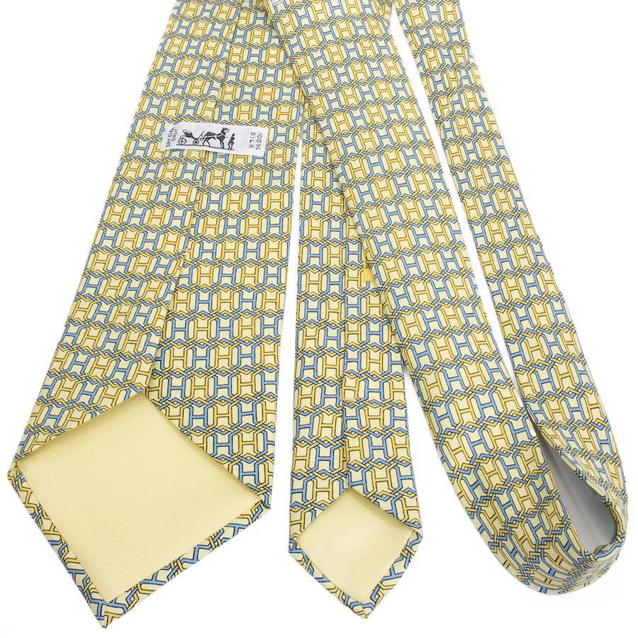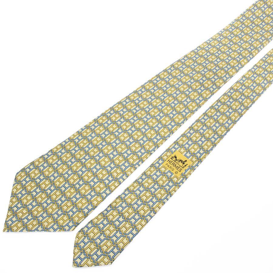 こちらは、ブランドの頭文字「H」を幾何学的に組み上げた、エルメスのネクタイでございます。