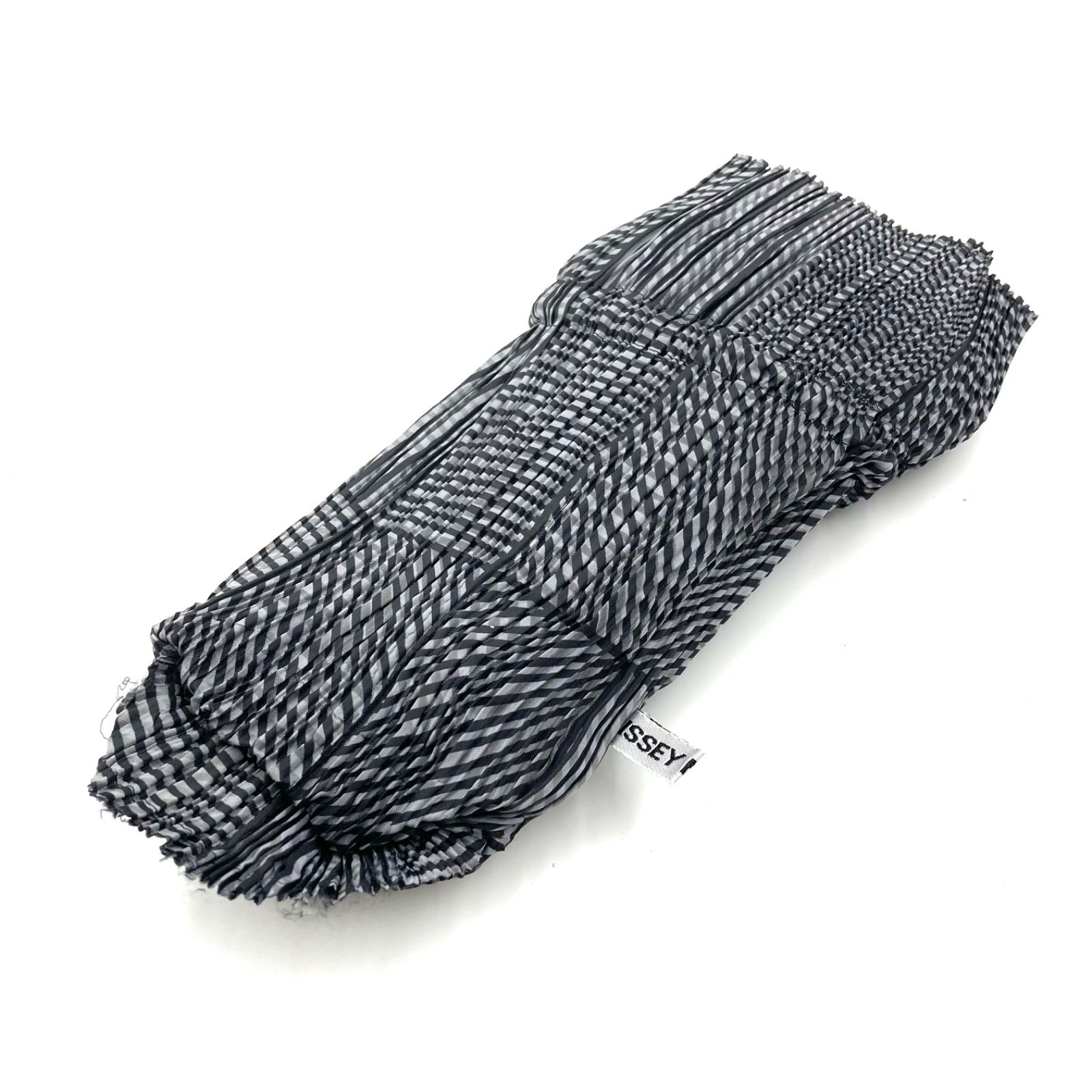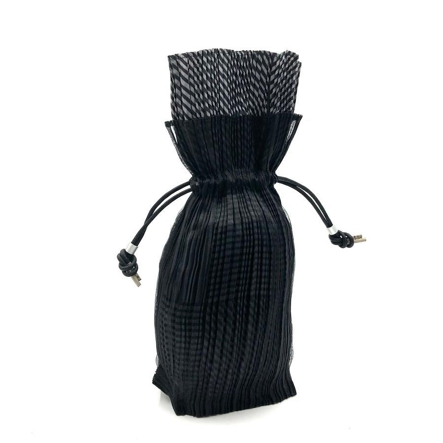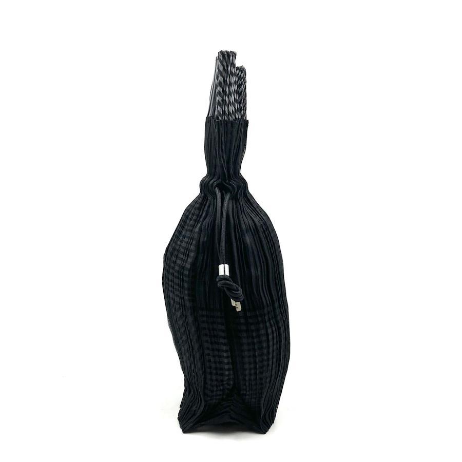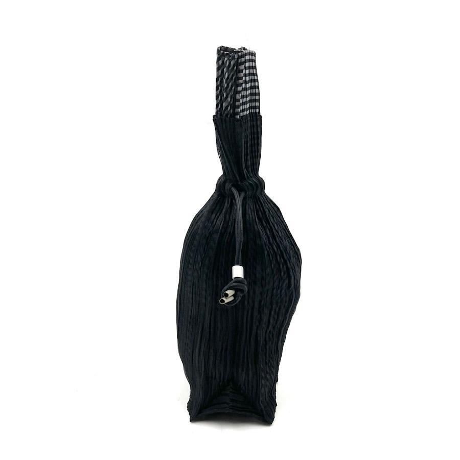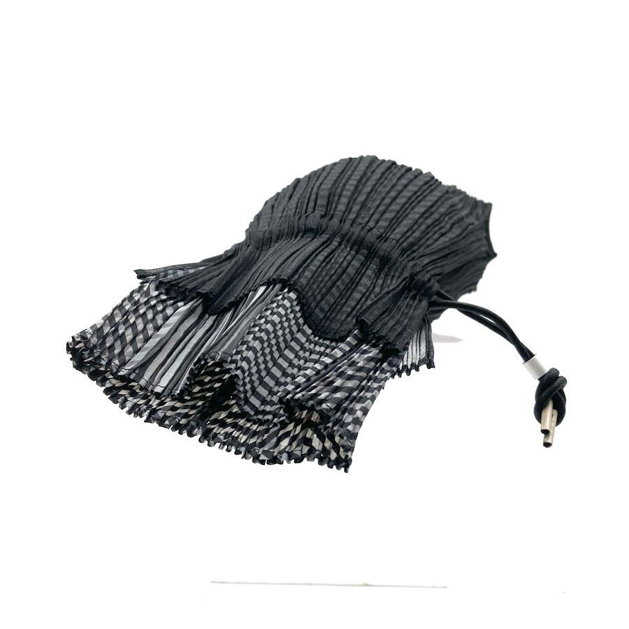 ■商品概要ISSEY MIYAKE イッセイミヤケ巾着プリーツポーチドローストリング式ブラック×グレー×ホワイトシルバー金具ラグジュアリー 高級レディース