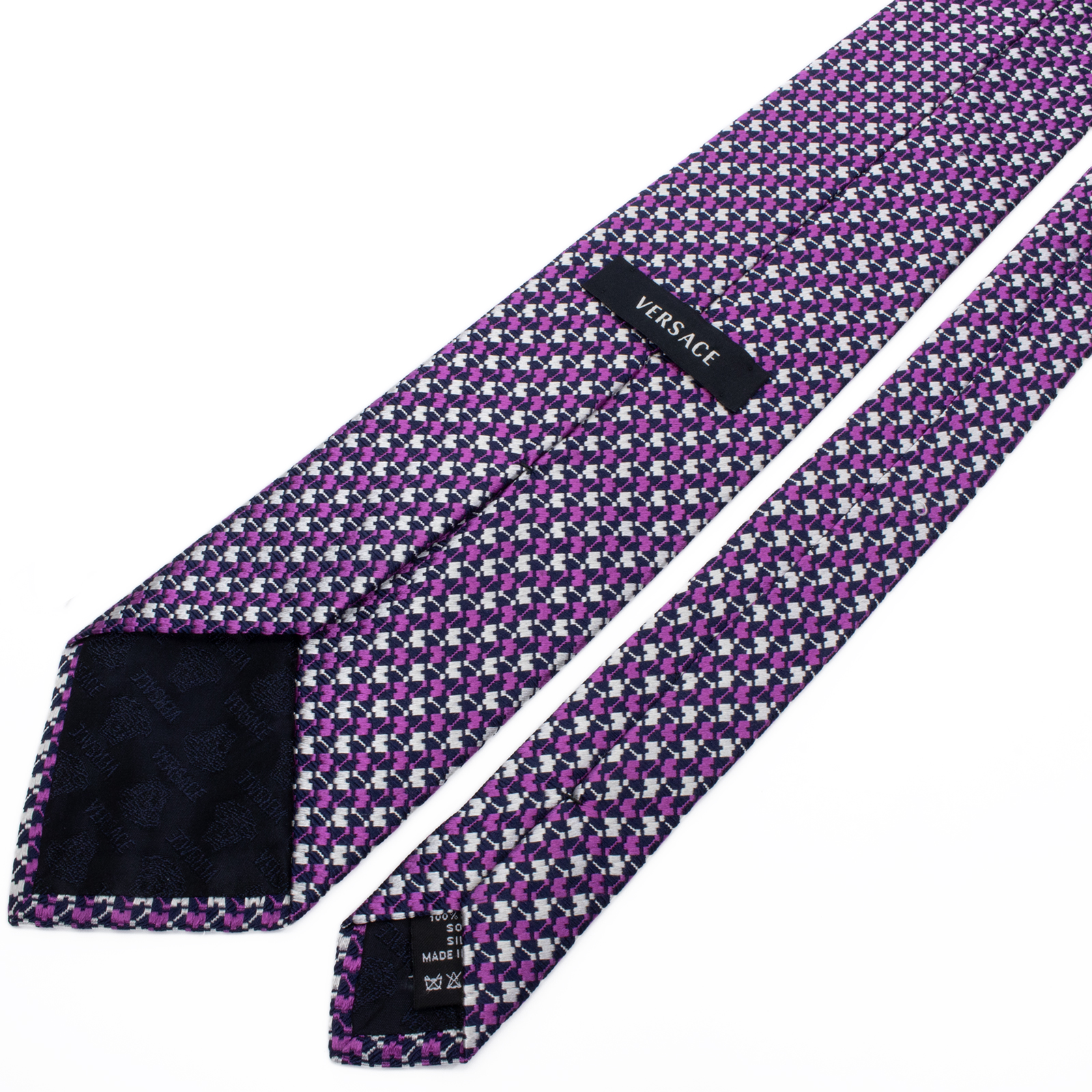 こちらは、パープルの輝きが大人の色気を醸し出す、ヴェルサーチェのネクタイでございます。