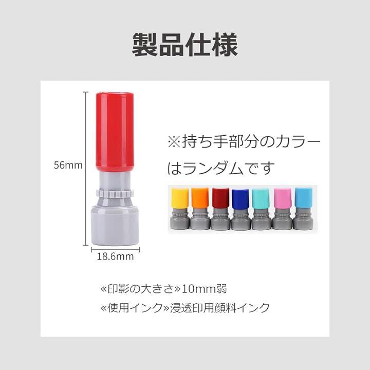 「製品仕様」「印影の大きさ」10mm弱 「本体寸法」高さ56cm 直径18.6mm 「使用インク」浸透印用顔料インク