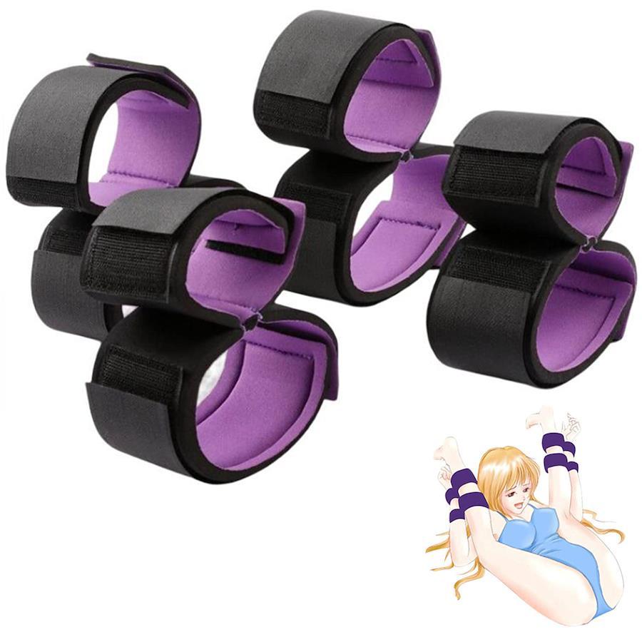 【smプレイ道具】4個セット。恋人との感情をお互いに増進するSMグッズで、手も足もホールドされて、逃れることができなくなるM字開脚強制ベルトです。このグッズでパトーナーを拘束する快感を楽しみましょう。