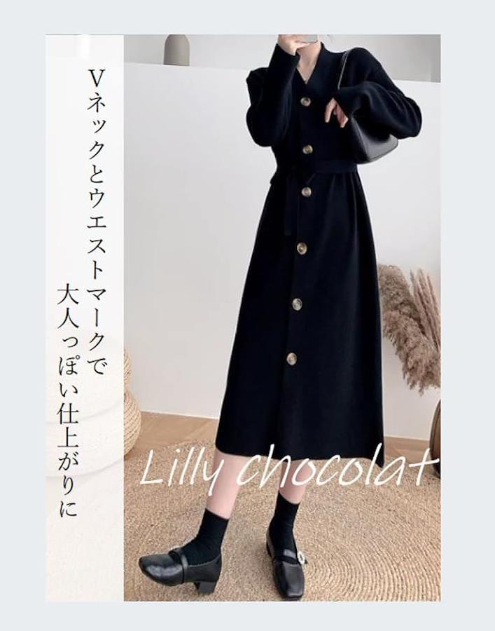 ゆるっとラフに着こなせるvネックのニットワンピースになります。