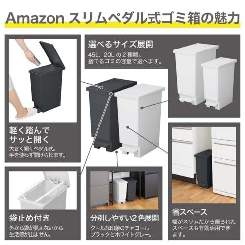 どんなシーンにもマッチするデザイン サイズ:幅26.5×奥行45.5×高さ55.5cm、容量:45L、重量:2kg、材質:ポリプロピレン、生産国:日本 【.co.jp限定】両手がふさがっていても安心な、軽く踏んでサッと開くペダルペール スリムな幅26.5cm、省スペースでスッキリ置ける 本体内側にはポリ袋を固定する袋止め付き どんなシーンにもマッチするデザイン