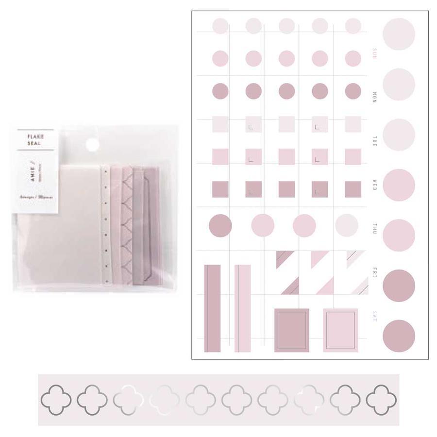 マスキングテープ:5mm幅・長さ5mシール(マンスリーシート):W102×H150mmフレークシール:W50×H70mm・6種各5枚