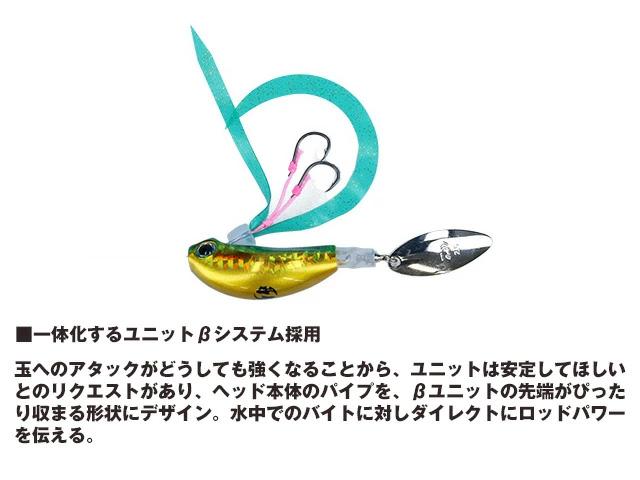 中井一誠氏が提唱する、”真鯛の活性を上げて効率的に釣る”タイラバ新メソッド”玉噛みコンセプト”。ヘッドにダイレクトに当てってくる真鯛に対し、フッキング性能を向上させるために、ヘッドに近い位置にフックポジションがくるように新たにデザイン。高比重タングステン素材による確実なタッチアンドゴーとブレードによるアピールで強烈にターゲットにアピール。