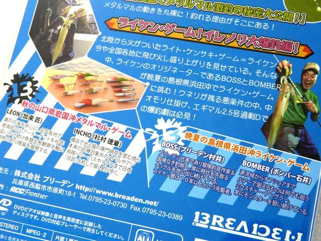 今や全国各地に飛び火し盛り上がりを見せている。そんな中、ライケンのオリジネーターであるBOSSとBOMBERが晩夏の島根県浜田沖でライケン・ゲームに挑む!ウネリが残る悪条件の中、中オモリ仕掛け、エギマル2.5号過剰Dでの爆釣劇は必見!