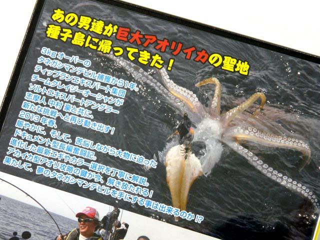 2013年春、賑やかに、そして苦悩しながら大物に迫ったドキュメント型長編奮闘記。進化した最新エギやカラー選択を丁寧に解説。アカイカ型アオリ攻略の鍵が今、解き放たれる!果たして、夢のタネガシマンデビルを手にする事は出来るのか!?
