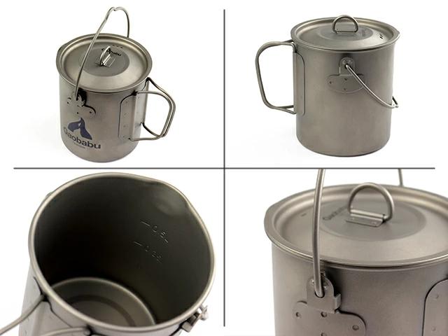 ソロキャンプやツーリング、トレッキングなどに使いやすい軽量チタンポットです。自立型のベイルハンドルが付いていますので、焚火での使用も可能です。