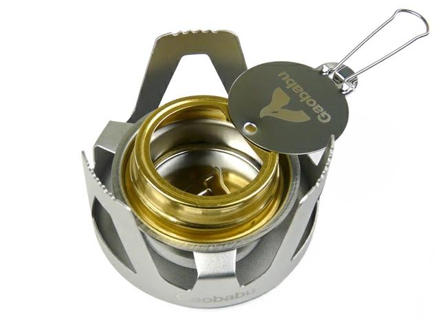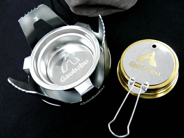 チタンポットSOLO 800(フタ・厚手メッシュ袋付き)、固形燃料トレー + Gaobabuアルコールバーナー 火力調整・消火フタ + 五徳ベース + 五徳ベース収納用きんちゃく袋 以上5点のお得なセット販売です。