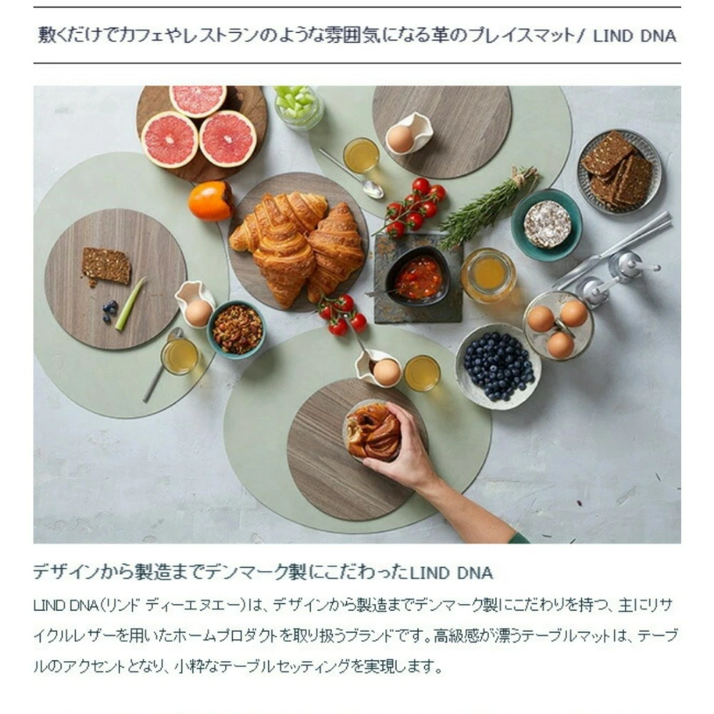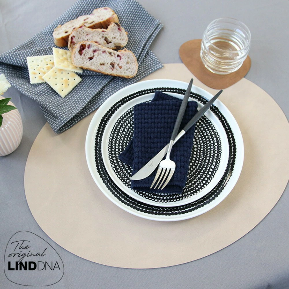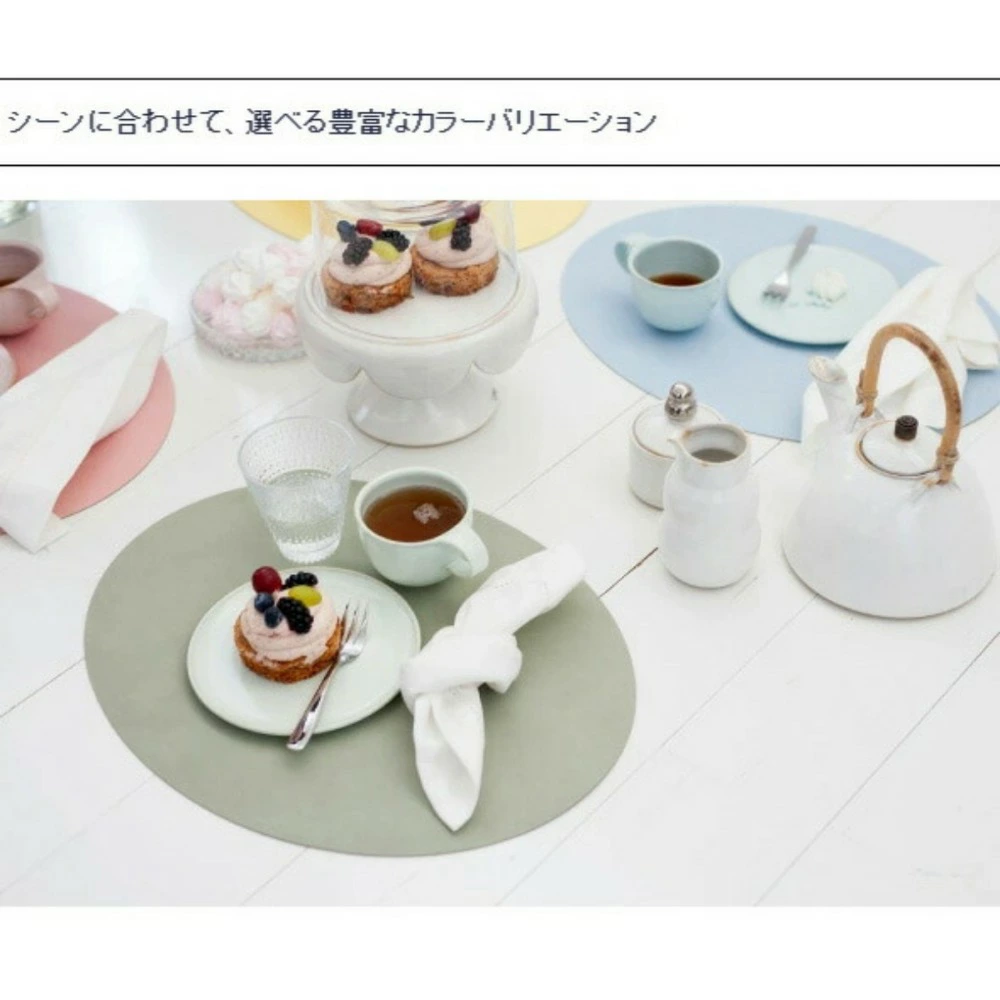プレイスマット、コースター、フラワーベースカバーはリサイクルレザーを使う事により革の高級感と暮らしの中での使いやすさを両立。
