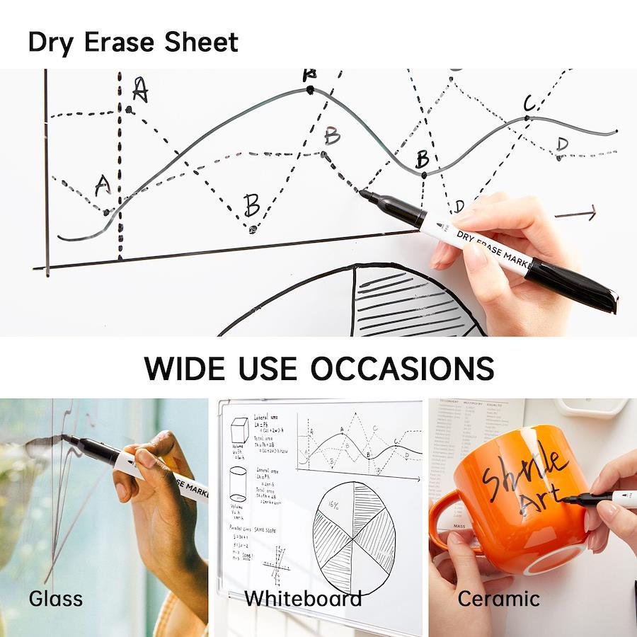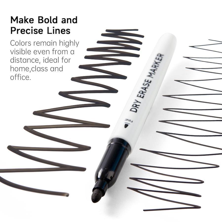 Lineon ホワイトボードマーカー 100個パック ブラックホワイトボードマーカー 消しゴム3個付き 細字ホワイトボードマーカー ホワイトボード、ホワイトボード、ホワイトボード、学校、オフィス、自宅用ガラス