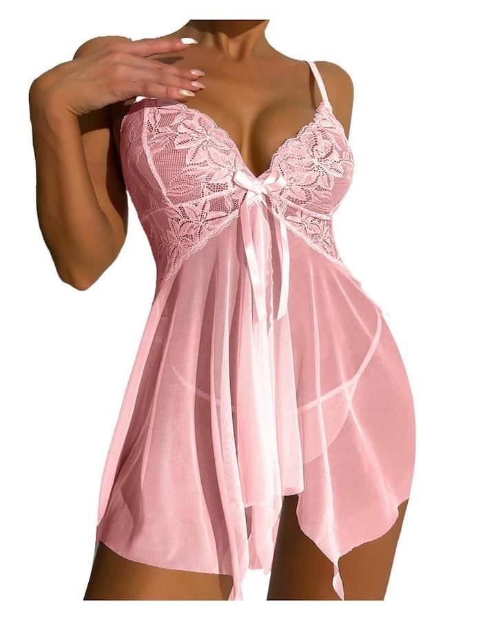 Lingerie Set, Lace Sexy Pajamas, Erotic Lingerie, See-through Clothes, Women's Mesh Halter Nightgown, Pink, Sizes S-XL, and More