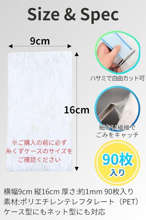 横幅9cm 縦16cm 厚さ:約1mm 90枚入り 素材:ポリエチレンテレフタレート(PET)