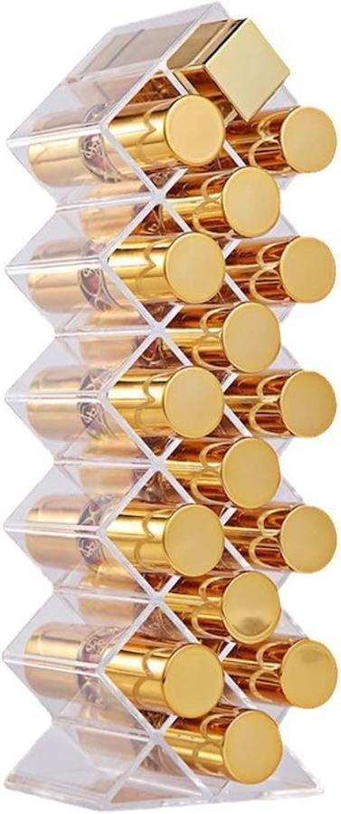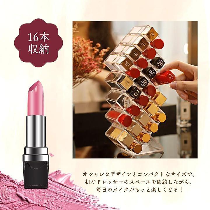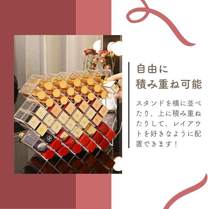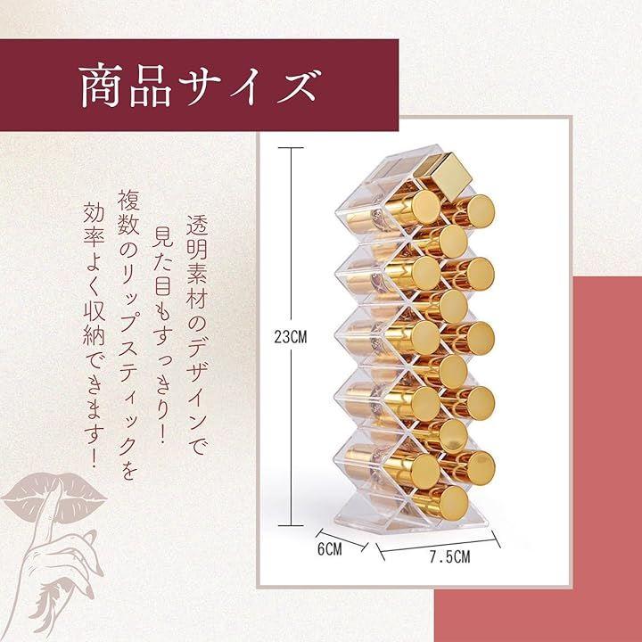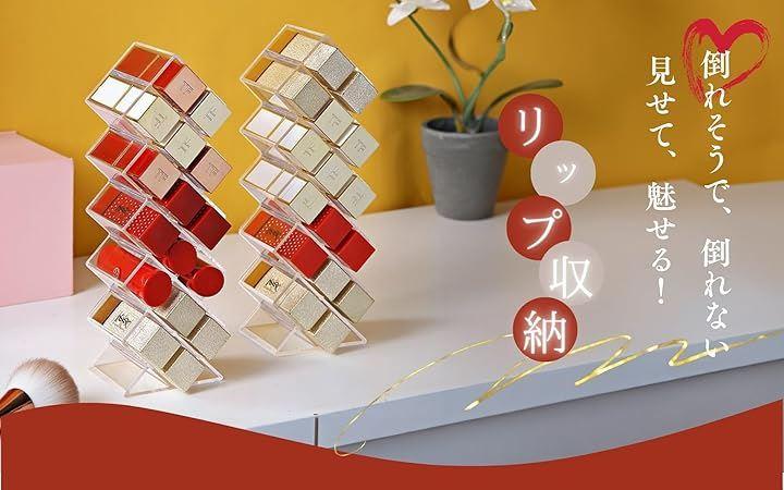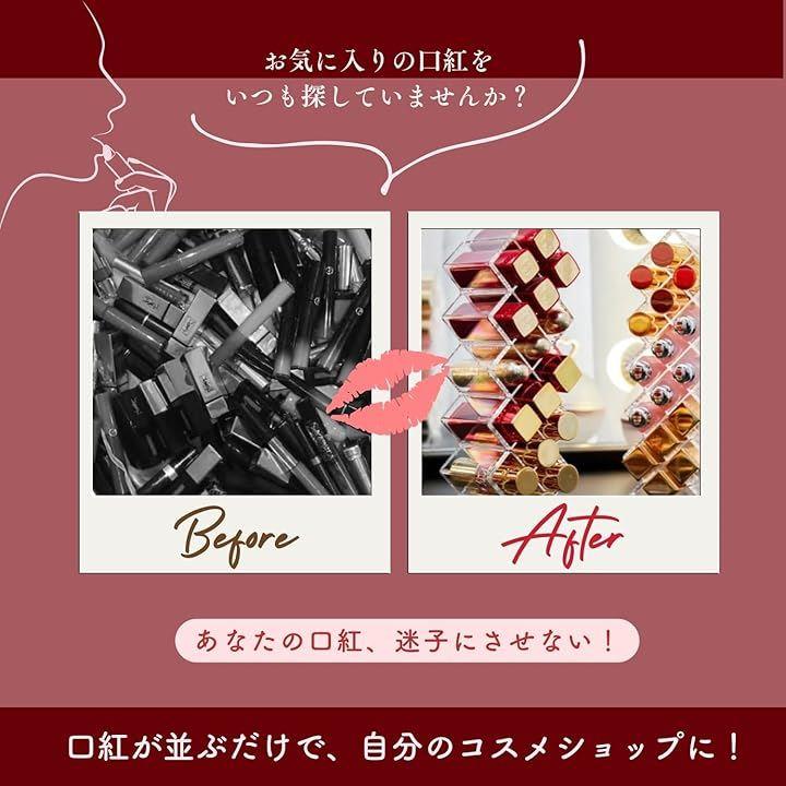 「スペースを有効活用」階段式のデザインで、各段の高さが異なるため、さまざまなサイズのリップを効率よく収納できます。