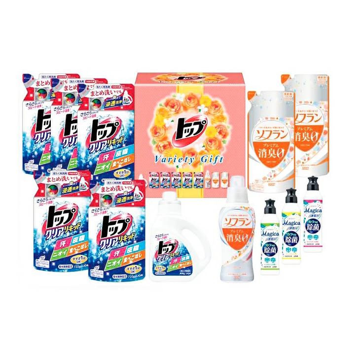 トップクリアリキッド 本体900g×1、つめかえ用720g×5、ソフランプレミアム消臭アロマソープの香り550ml×1、つめかえ用420ml×2、CHARMYMagica速乾+カラッと除菌 シトラスミントの香り、クリアレモンの香り、ホワイトローズの香り各220ml×1