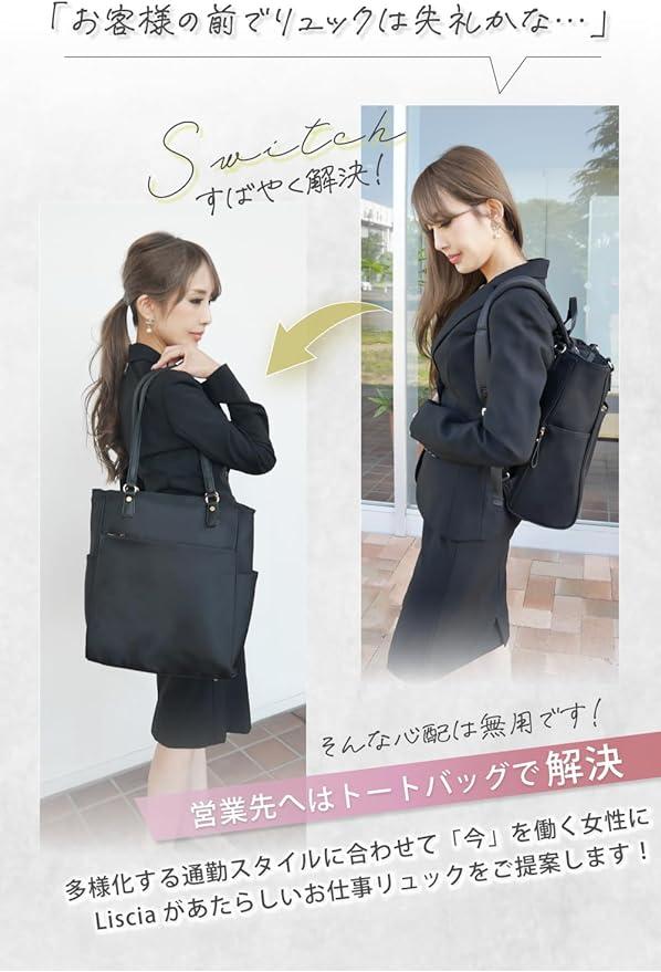 [Liscia] ビジネスリュック レディース 【トートバッグになるリュック】 ビジネスバッグ 通勤 通学 軽量 大容量 a4 ナイロン リュックサック ノートpc 13インチ対応 (ブラック)