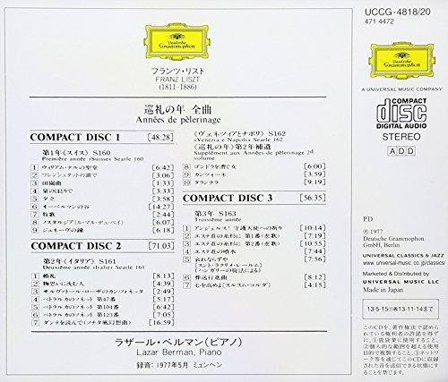 通常1-5営業日で発送:内容紹介 193年2月26日現サンクトペテルブルク生まれのユダヤ系ロシア人。4歳で演奏会を行い、7歳で最初のレコード録音を行った神童。東ドイツ国際青年音楽祭コンクール、ブダペスト国際音楽コンクール第1位。ピアノの名手ギレリスがカラヤンに「私とリヒテルのふたりが4本の手で対抗しても勝てそうにないピアニスト」と答えたというエピソードが広く知られるように、素晴らしい技巧の持ち主。「リストの再来」とうたわれ、フランツ・リスト賞も授与している。ベルマンがクラシック名門ドイツ・グラモフォンにデビューした前後に録音されたのがこの盤で、ベルマンの最も高揚した時期の演奏と評されている。リスト演奏にも定評があり、この盤は〈巡礼の年〉の決定盤といっても過言ではない。25年2月6日フィレンツェにて74歳で亡くなっている。 曲目 フランツ・リスト: 《巡礼の年》 全曲 巡礼の年 ・ 第1年《スイス》 S16 1.ウィリアム・テルの聖堂 2.ワレンシュタットの湖で 3.田園曲 4.泉のほとりで 5.夕立 6.オーベルマンの谷 7.牧歌 8.ノスタルジア(ル・マル・デュ・ペイ) 9.ジュネーヴの鐘