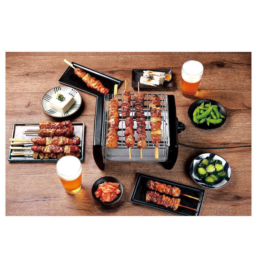 3営業日以内に発送≪新品未開封品≫:普通サイズの焼き鳥もたくさん置けるのでご家族で楽しむのも◎温度調節ダイヤルがついているのでゆっくり楽しめますじっくり熱をいれるので、余分な脂を落としてヘルシーに本体:約W28.5×D20×H14cm 焼き網:約19.5×20cm約560g(焼き網・トレイ含む)