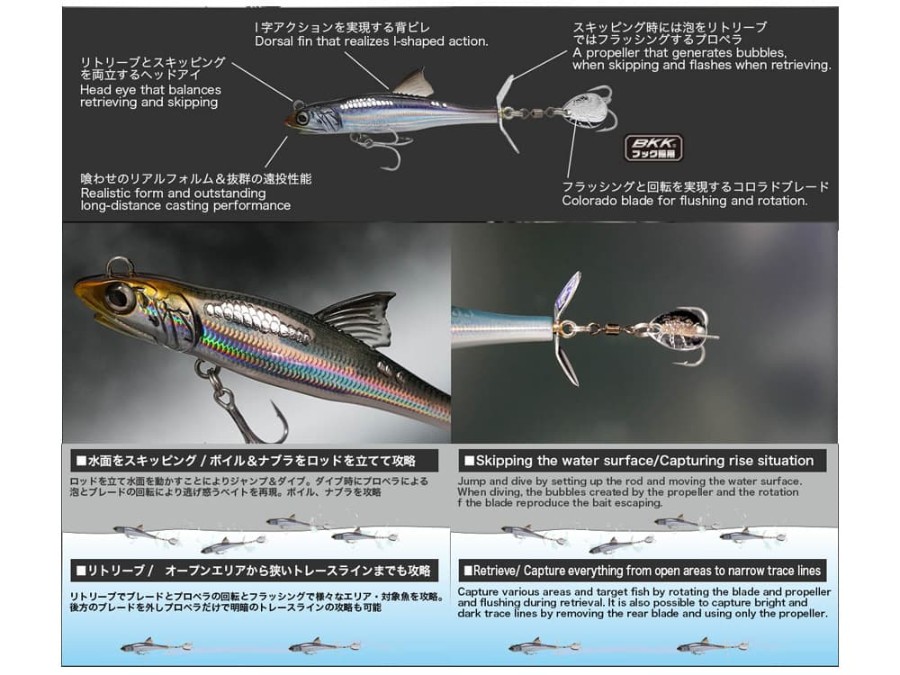 ただ巻きでプロペラ+ブレードのダブルフラッシングアクションでより広範囲のターゲットに力強くアピールします。