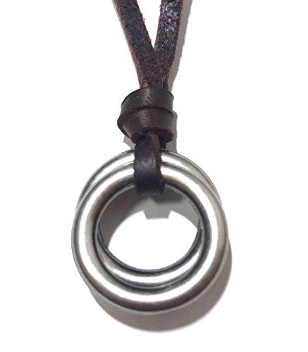 [Live A Mile] Authentic Leather Ring Necklace Leather Cord Unisex Long Accessory with Jewelry Pouch (Brown)