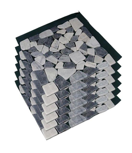 スタイル:2)ミックス系◆商品名:リビングアウト(LivingOut)天然石マット30×30cm6枚セットノワールタイル石畳敷石防草シート庭石DIY洋風防草マット雑草対策ガーデン敷くだけ置くだけ