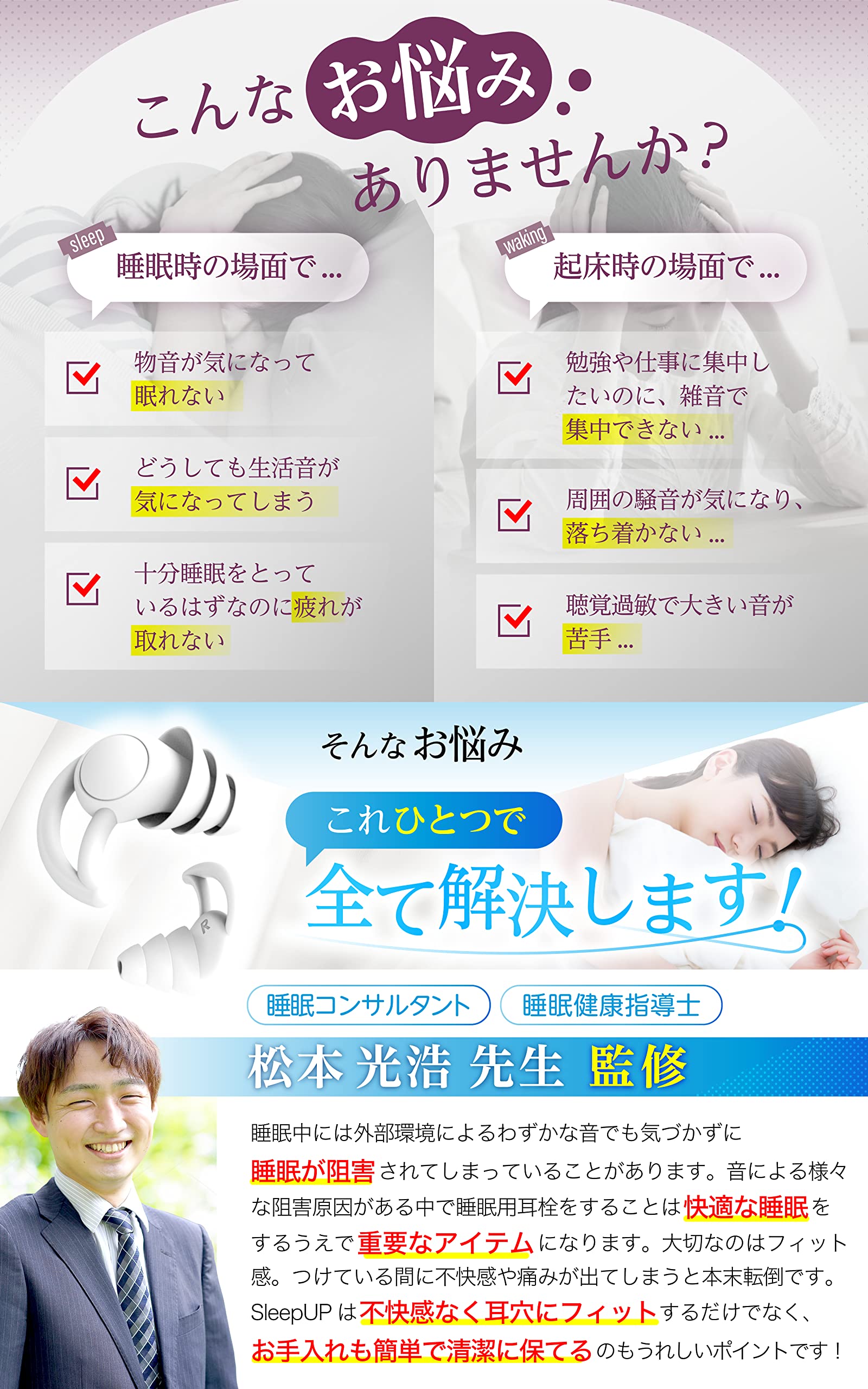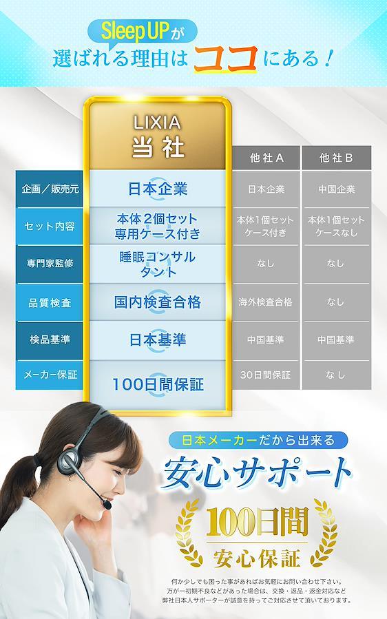 ??当商品は品質担保の為『国内検品を全ての商品で行なっております。』基本的には開封し、検品後に袋詰めを行なっております為、開封済みだから使用済みじゃないかとの声をいただくことがありますが、新品未使用品で御座います。何卒ご了承くださいませ。 ??当商品はS.Mサイズのセット以外の販売を行なっておりません。LLセットが届いたという報告を頂きますが、商品バーコード下の商品タイトルが途切れた事による誤解で、よくご確認して頂きますと、L I ...セットとなっているかと思われます。恐れ入りますがご確認お願い致します?? ?【NRR33dbの遮音効果】NRR33dBのノイズ低減効果があります。しかし完全遮音ではなくアラームや呼びかけなど必要な音は聞こえるので安心してご使用いただけます。 ?【こんな方にオススメです!】睡眠の質を向上させたい方、雑音を低減して安眠したい方、勉強・仕事に集中したい方、ライブなどの大音量の環境から耳を保護したい方、聴覚過敏・ミソフォニアの方にもオススメです。 ?【2種のサイズ×段階調整可能+収納ケース付属】2サイズ(S(黒色),M(白色))の耳栓が付属しています。Mサイズで3層の傘Sサイズで2層の傘があります。各サイズ挿入加減によってサイズ調整が可能となっておりますので、合計5段階の超背サイズ調整が出来るようになっており、あなたの耳にあったサイズが見つかります。 また製品本体を清潔に収納する便利な持ち運び収納ケースも付属しています。 ?【日本語説明書付き】日本語での説明書も付属していますので、ご安心して購入ください。 ?【睡眠コンサルタントが監修】LIXIAの耳栓は睡眠用に特化しています。ウレタン製の耳栓と違い完全に耳を塞がないので、長時間使用しても耳が蒸れにくいのが特徴です。医療グレードのシリコンを使用しているため耳に優しくフィットし、寝返りを打っても耳が痛くなりにくいのも特徴です。また本製品は水洗いできて繰り返し清潔に使用可能です。