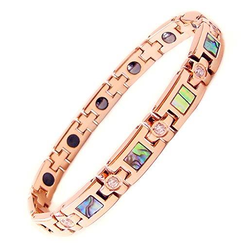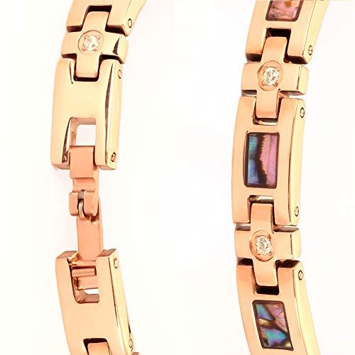 【ゲルマニウムブレスレット】ゲルマニウムは血行促進・ストレス軽減・睡眠改善・凝りや痛みの改善・冷え性対策・美肌効果・老化予防・原因不明の体調不良の改善など様々なアンチエイジング効果があるとされています。【オシャレで高級感もあり、いろんなシーンにお使い頂けます。】自然なシェルはめ込み、チャーミングなデザイン、高度に磨かれ、洗練された外観、仕事やパーティーに最適なアクセサリー。収納ボックス付き、自分へのご褒美、友達へのプレゼント・ギフトお勧めです!【女性向きのプレゼント】誕生日や結婚記念日、母の日、敬老の日、クリスマス、バレンタインデー等、特別な時に大切な方への贈り物におススメします!【材質】ゲルマニウム(純度99.99%)、ヘマタイト、カラフル ナチュラル 貝殻、チタン。【カラー】ピンクゴールド(ピンクメッキ)【サイズ】長さ18.5cm、幅約8mm、厚さ2mm【商品の保証について】お客様が弊社の製品を購入していただき、製品の品質問題が見つかったら、弊店まで早急にご連絡お願いします。迅速に返答いたし、問題が解決するまでお客様と連絡を取ります。