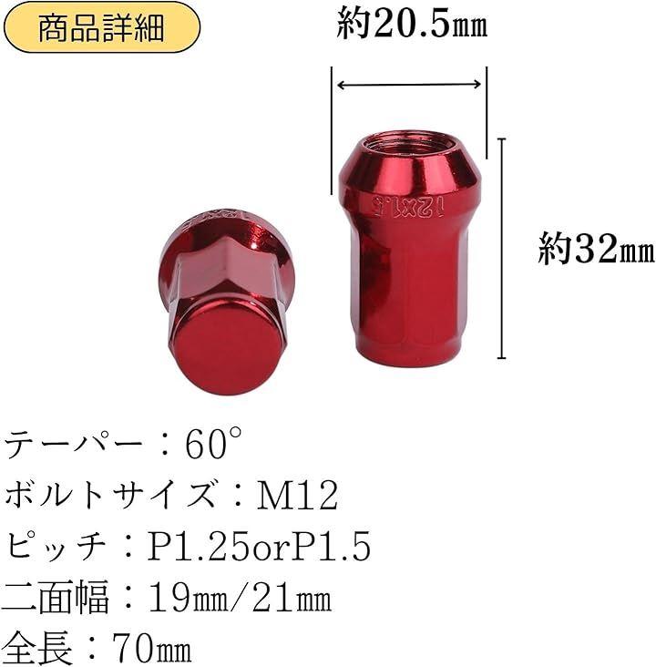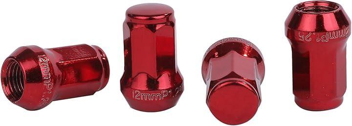 Compatible Lock Nuts Red Car Tire Wheel Nuts M12 Short Nuts Lug Nuts Racing Nuts 20 Pieces 1.25mm