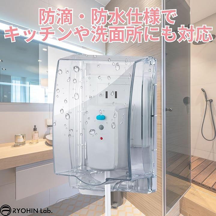 「防滴・防水仕様でキッチンや洗面所にも対応」リビングや子供部屋にはもちろんのこと、防滴性と防水性を備えたカバーなので、キッチンや洗面台、トイレなどの水回りにも適応。