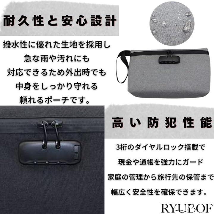 「高い防犯性能」3桁のダイヤルロック搭載で現金や通帳を強力にガード、家庭の管理から旅行先の保管まで幅広く安全性を確保できます。