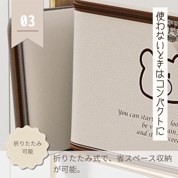 「おしゃれなデザイン」 無機質になりがちな収納ボックスに、可愛らしいくまのイラストをあしらいました。